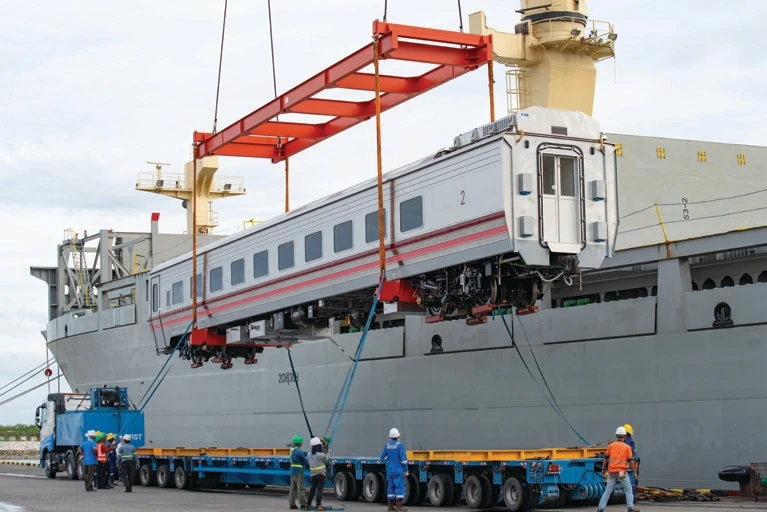 Layanan pengiriman alat berat dan mesin industri.
